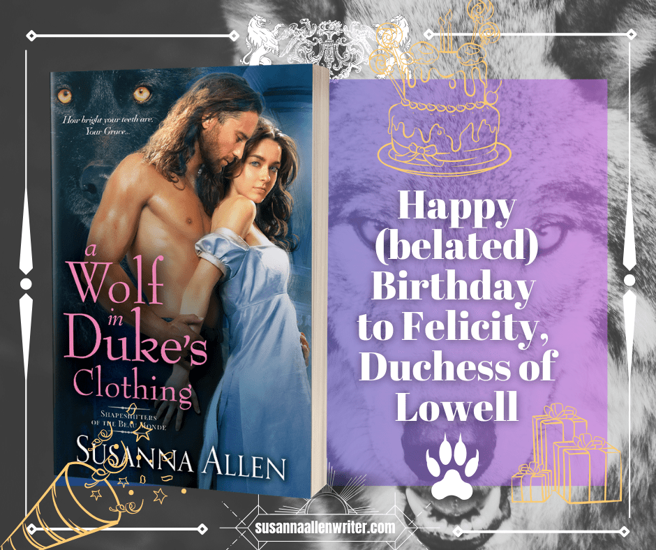 I am not forgetting about fans of O’Mara: I won’t spoil A Duke at the Door but the sudden appearance on the scene of a certain horse Shifter was, of course, meant to be.